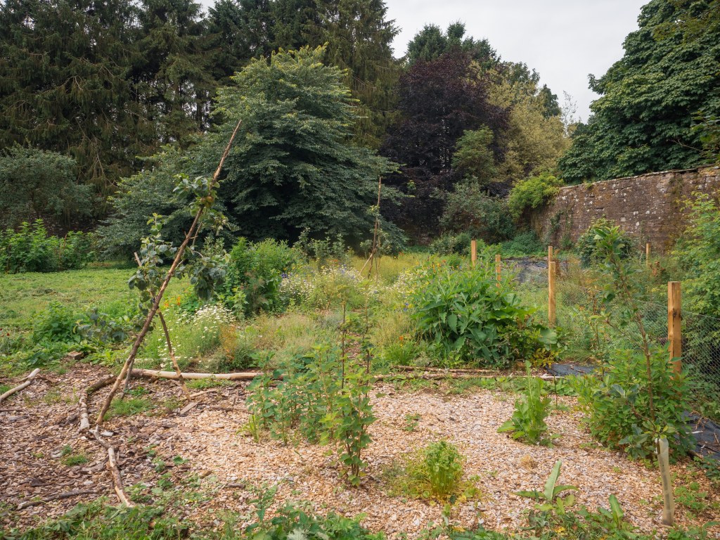 Since the end of 2021, the northwest quadrant has been the primary focus, with the gradual establishment of a “forest garden.” The northeast area takes a slightly different approach, more akin to a market garden, featuring a polytunnel and raised beds that were first constructed in 2022.