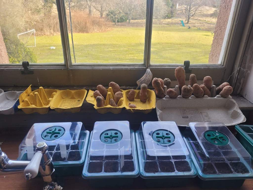 In late January I began using indoor seed propagaters to get red pepper/chilli/onion/aubergine plants underway. This was then later accompanied by my first ever experience with “chitting” seed potatoes – beginning with pink fir apple, rocket, kestrel and maris piper varieties.