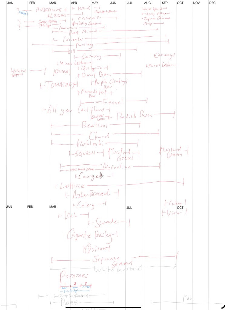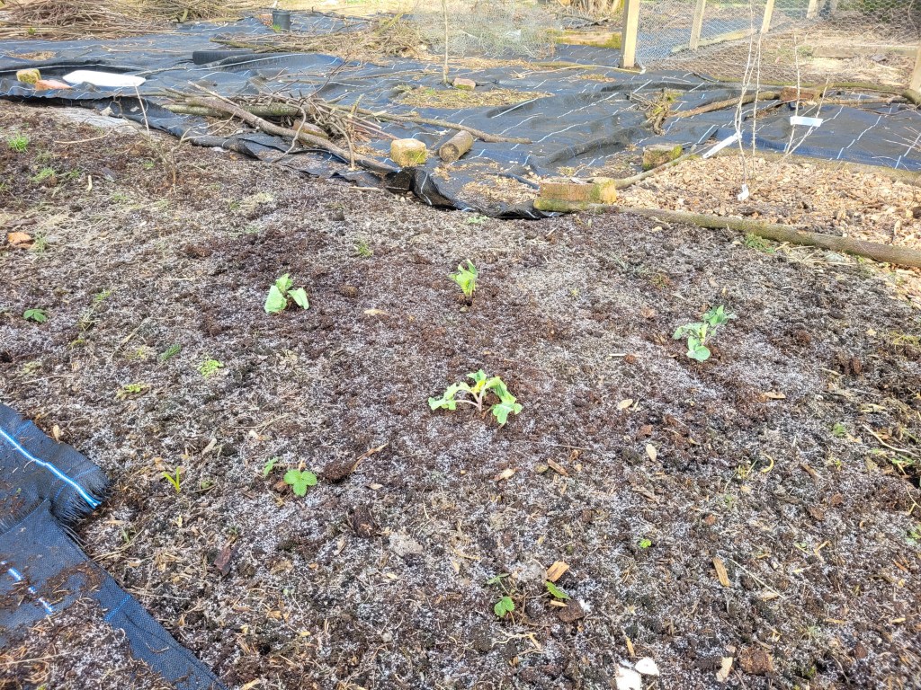 All this exciting activity didn’t cause me to forget the polytunnel. Some plants in the tunnel have survived the winter – turnips, parsley, a little red kale and kohlrabi, bok choy, celery, some chard and beetroot, wild rocket, mizuna – sounds like a lot, but it’s a fairly humble scattering of plants. I have discovered how important it is to lay fleece on the plants, which has protected them from some very low temperatures – often as low as -10 degrees. In fact, the garden just seems…cold, in general. Which is also an observation from some others who have tried gardening here in the past, and which feels like a distinct disadvantage – but as last year showed, a lot is still possible during summer. But I’m struck by how there is literally nothing green surviving outside at all here during winter (except of course for anything evergreen).