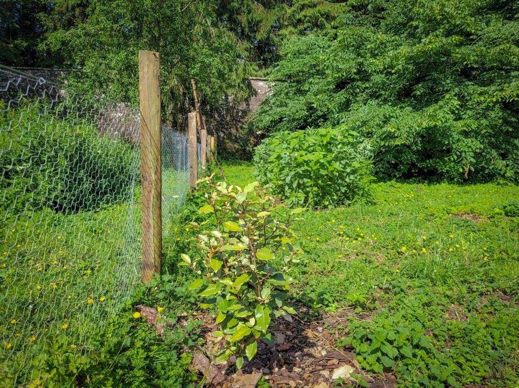 Then there are the fruit trees. Six apple trees were originally planted in late 2021. Two were ring barked by rabbits (prompting the rabbit fence construction). One was damaged in a storm. Of these three one is definitely dying off, but new shoots are emerging above the graft, so it gets a second life. Others are producing very little or no fruits. Overall this is a serious setback for those three. However, the remaining three, plus a new one added in early spring this year have all blossomed and now have set around 70 little baby apples between them – which is heartening. A massive increase by about six times compared to last year, and with fewer viable trees.