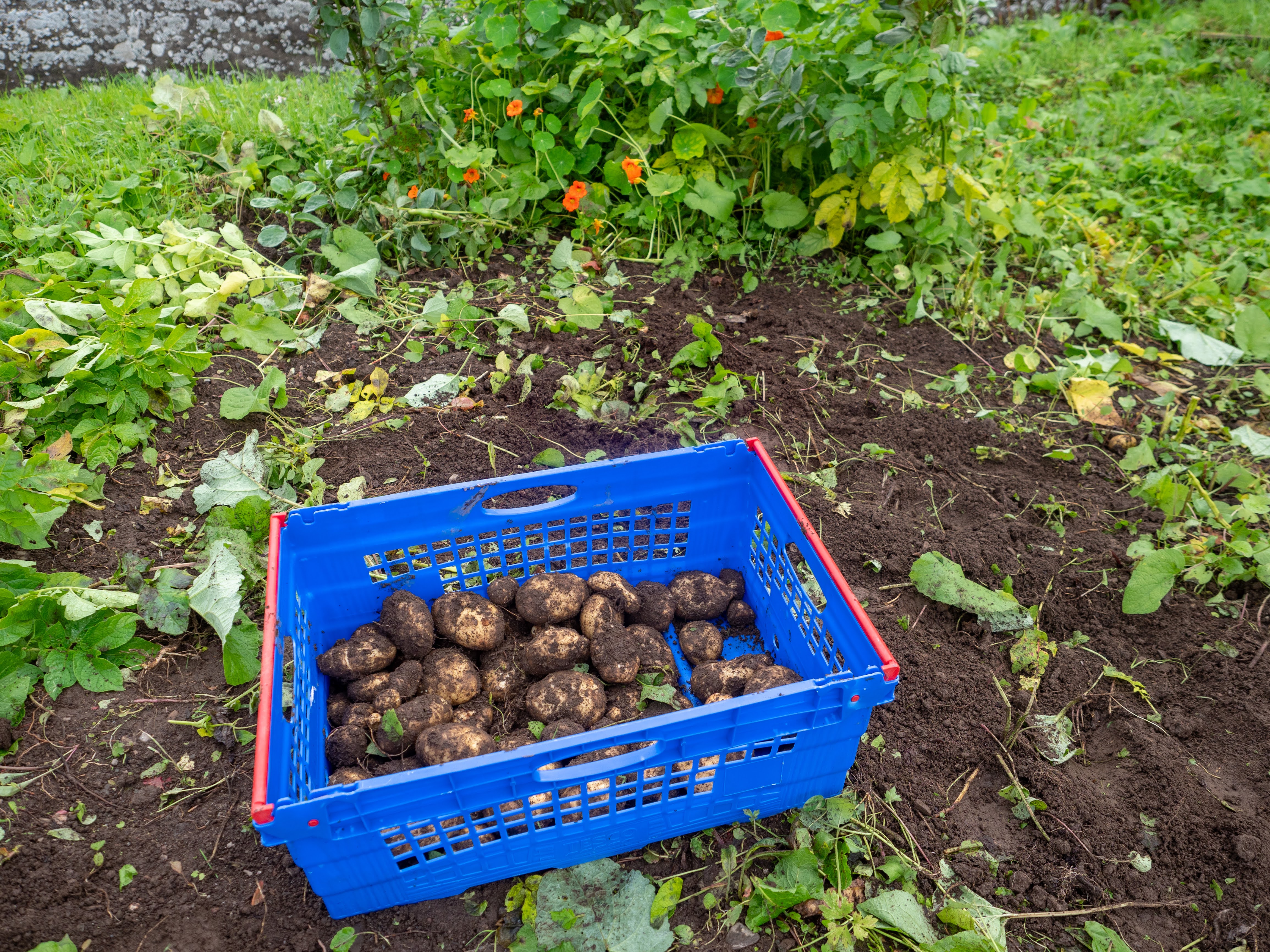 Harvesting of my very first potato crop in the walled garden began in mid June with the first of the first-earlies, and ended with the last maincrops in late september/early october. Most varieties had a good yield, and while blight was limited in many cases, it was ultimately inevitable for some, especially given the wet August conditions and the notoriety of its presence in this area.