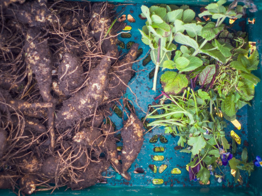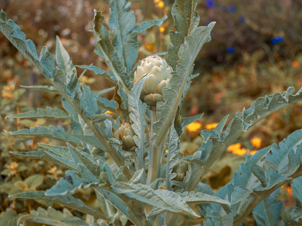 There is, of course, another type of artichoke, completely unrelated, and that is the globe artichoke. Grown from seed, these were also another unexpected success, and are now found in the forest garden area. Slightly similar in flavour to their tuberous namesakes, these thistle-like flowers produce the most sublime tasting petals – needing very little to enhance them after gentle cooking; a little olive oil, garlic and lemon perhaps.