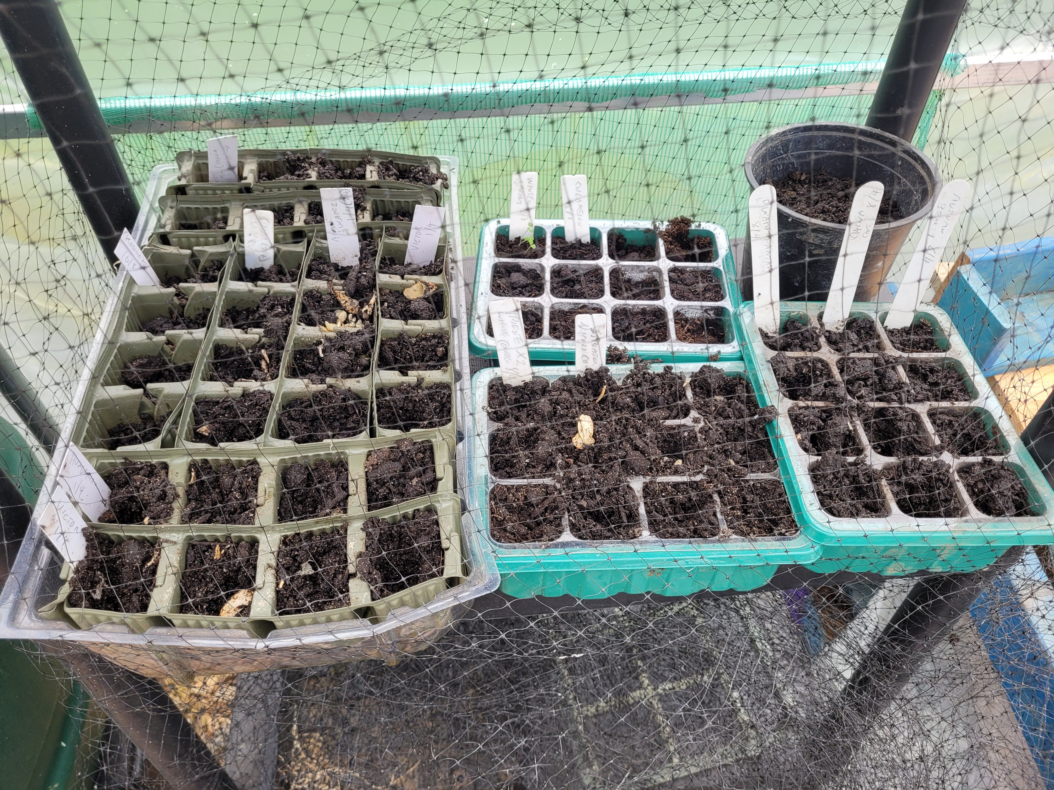 Just covering them with netting, such as pictured above, wasn’t enough. My solutions were then to suspend the growing modules up beyond their reach and, later, to use some live traps, allowing me to translocate them. By this time, however, we were already into mid June, and it was a little too late to catch up with certain crops. Additionally, some shockingly cold weather also arrived in mid-June (reaching below zero degrees), ruining many tender plants outside the tunnel. The voles also targeted established vegetables—particularly the lovely beetroots that were forming in the tunnel, as well as the stalks of climbing beans and even tomatoes!