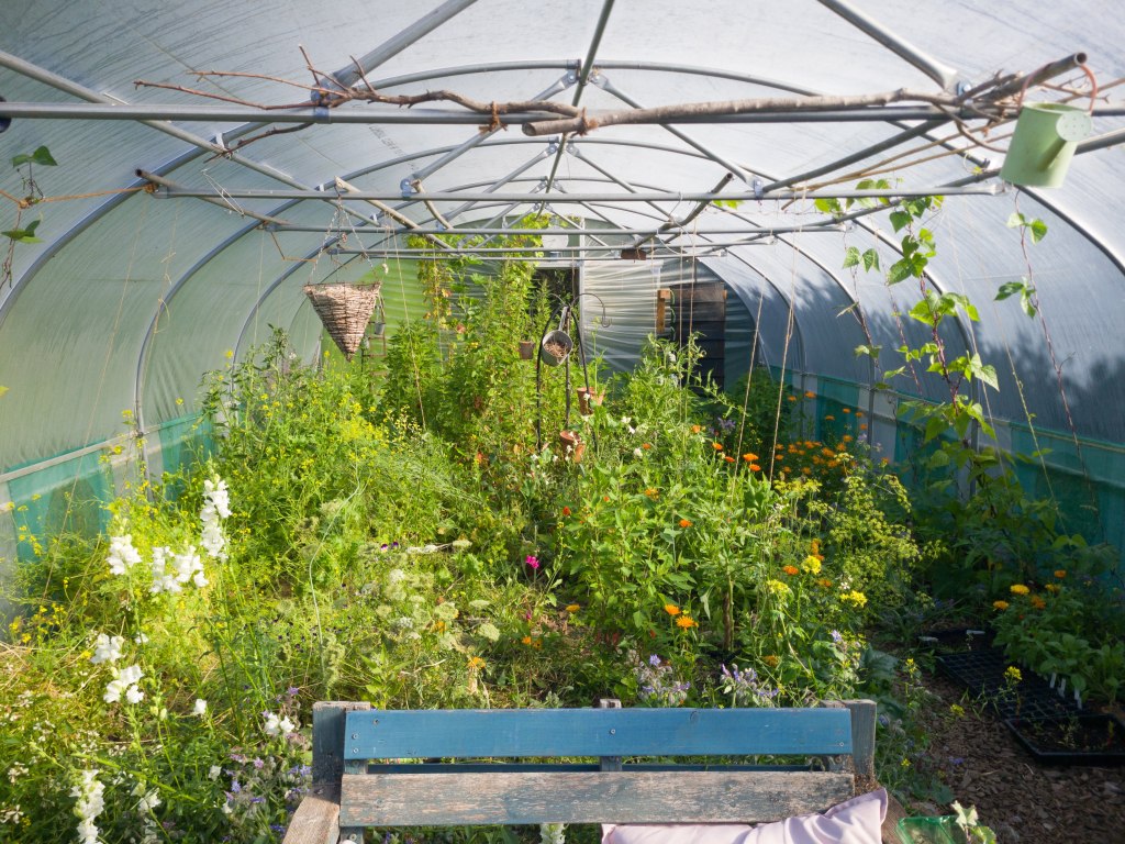 Also self-seeding were beautiful companion plants—annuals such as borage, snapdragon, nasturtium, marigold, and calendula (all edible too). Together with perennial wild violas, the bounty of colours emerging in the tunnel as we entered summer was quite stunning.