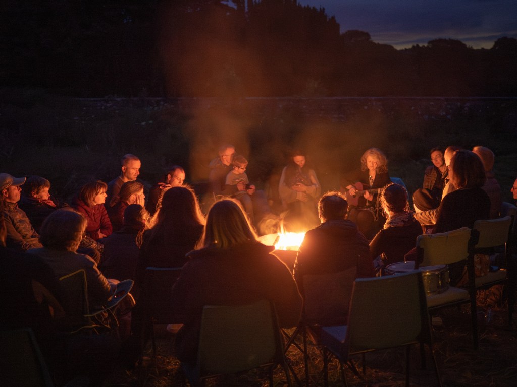 Guests began arriving in the early afternoon on Saturday, 13th July. Barbecues were lit, and before long, the place was teeming with people of all ages and backgrounds. The total attendance was hard to estimate, as some guests stayed for the afternoon or early evening, while others arrived later at night—when warm fires were accompanied by the wonderful singing of local folk music hero Christine Kydd.
