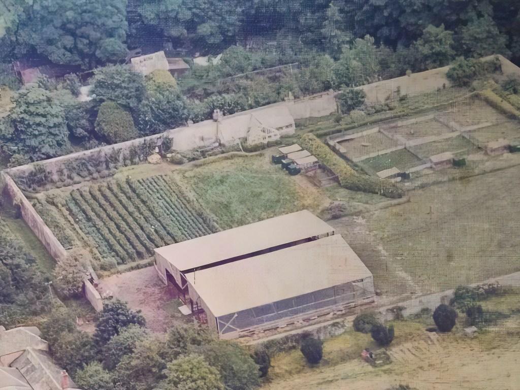 The basic structure of the old Victorian greenhouse, situated by the north wall and equipped with chimneys to provide heated assistance during the winter, appeared to remain intact at least until the 1980s. An old aerial photograph from around 1980 shows it seemingly in good condition.