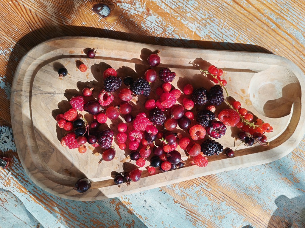 The berry harvest this year is something else entirely. Jostaberry, worcesterberry, and North American black raspberry are producing with a generosity I hadn’t anticipated so soon. I also hadn’t anticipated their deliciousness. Alongside them: redcurrants, blackcurrants, Siberian honeyberry, gooseberries, whitecurrants, raspberries, wild strawberries, elderberries and even a few little arctic brambles. The list grows longer each year, and so does the harvest. The forest garden area is starting to become a place of seriously generous foraging, at least in some form.